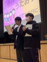 式の最後には、3年生のリクエスト曲を含む2曲の弾き語りが披露され、会場は大いに盛り上がり