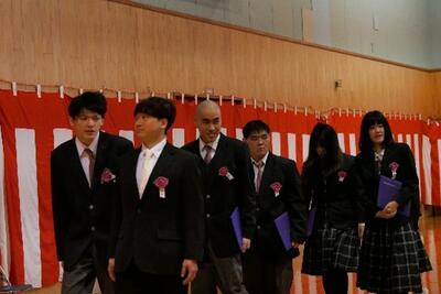 式場にはほどよい緊張感と期待が漂い、卒業生一人ひとりがこれまでの努力を胸に、堂々とした姿で卒業証書を受け取りました。晴れやかな表情には、学校での学びや経験への誇りが感じられました。