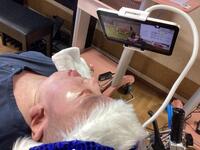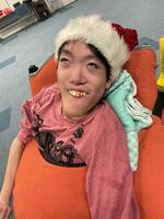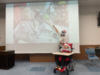 訪問教育学級では、12月18日(木)に「クリスマス会」を実施しました。この日に向けて各自が作成したオーナメントをツリーに飾り、点灯式をしました。作ったオーナメントを各自発表し、ツリーに飾ると、皆うれしそうな表情を見せてくれました。器楽演奏「ウインターワンダーランド」では、それぞれ自分に合った方法で楽器を鳴らしていました。午前は副校長、午後は校長先生がサンタクロースに扮して登場し、クリスマスソングのプレゼントをしてくれました。生徒たちは、サンタの登場に驚いた表情でしたが、素敵なギターの音色と歌声に笑みを浮かべていました