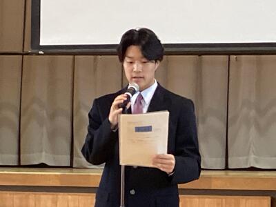 旧会長からは、一人一人が輝ける学校を目指して取り組んできたことや、役員一人だけでなく、仲間同士で意見を出し合いながら活動してきたこと、一年間の生徒会活動が大きな成果を上げたことが語られました。また、今後の生徒会役員の活躍に向けた激励の言葉もありました。